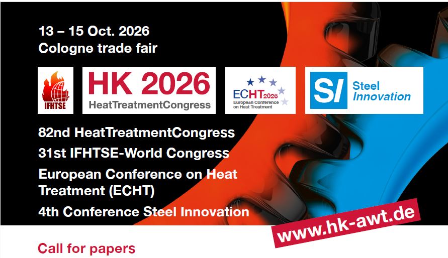 We eagerly anticipate welcoming you to Cologne in October 2026, where together, we will forge new pathways for innovation and collaboration. The main topics of the various conferences are:31st IFHTSE-World Congress, ECHT, HeatTreatmentCongress (HK)